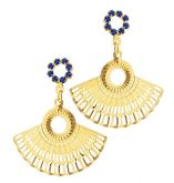 Brinco folheado a ouro c/ adorno de chapa vazada c/ estampas e pedras de strass CÓD.: BS2730